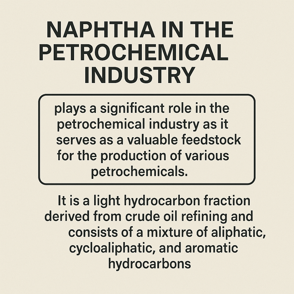 Naphtha plays a signifi cant role in the petrochemical industry as it serves as a valuable feedstock for the production of va rious petrochemicals. It is a light hydrocarbon fraction derived from crude oil refi ning and consists of a mixture of aliphatic, cycloaliphatic, and aromatic hydrocarbons